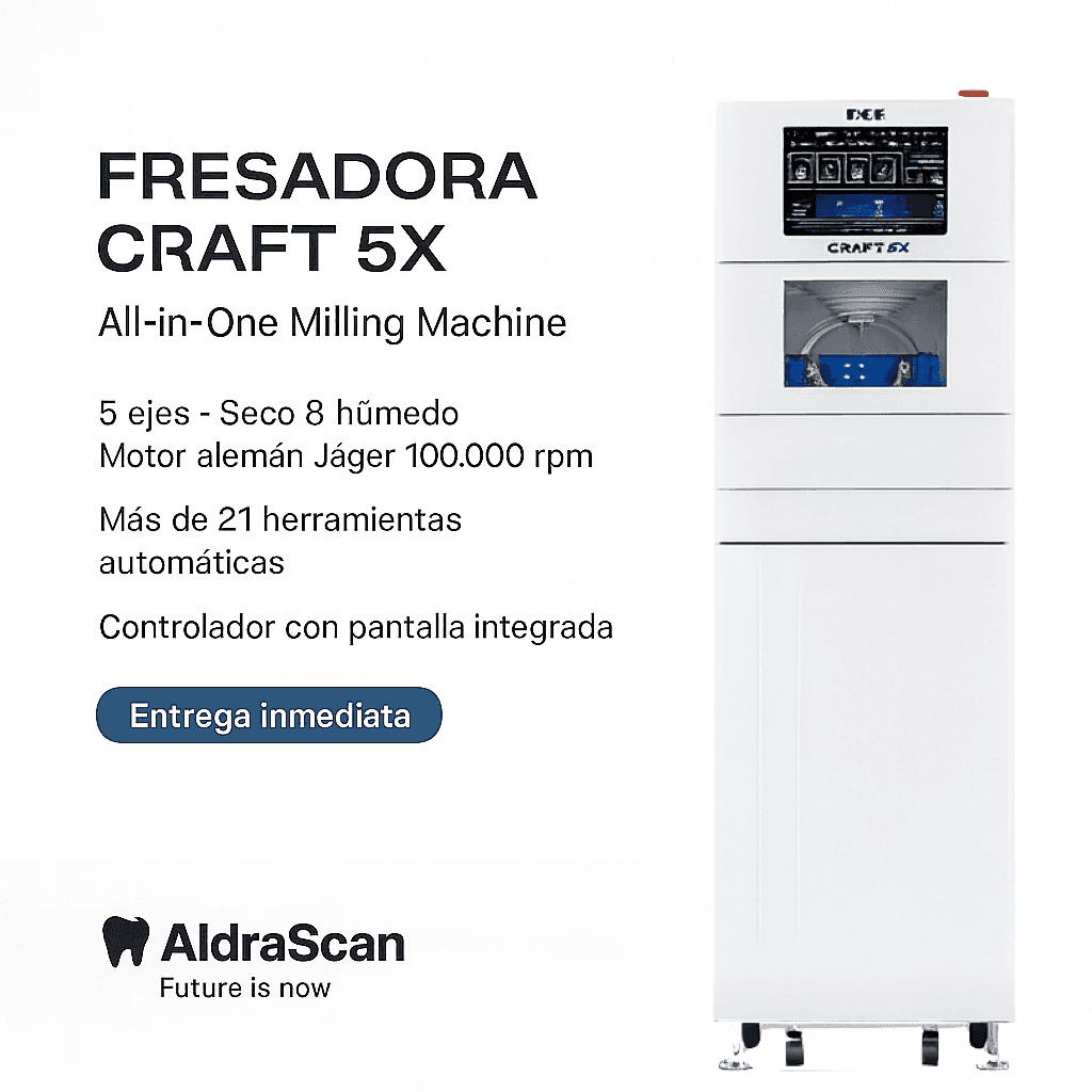 La Craft 5X permite producir restauraciones personalizadas completas —sin necesidad de procesos intermedios—, reduciendo tiempos y maximizando la precisión.